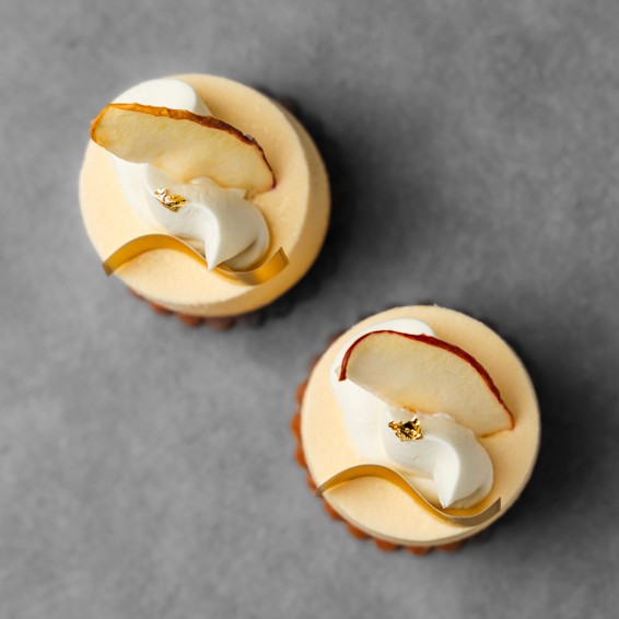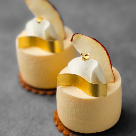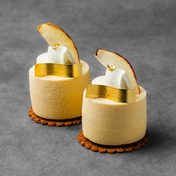 マスカルポーネムース、リンゴのコンフィチュール、マルサラワインのクリームシナモンのサブレ生地